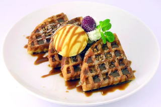 自家製のワッフルは、オーダーが入ってから焼き上げるため、アツアツで絶品です。